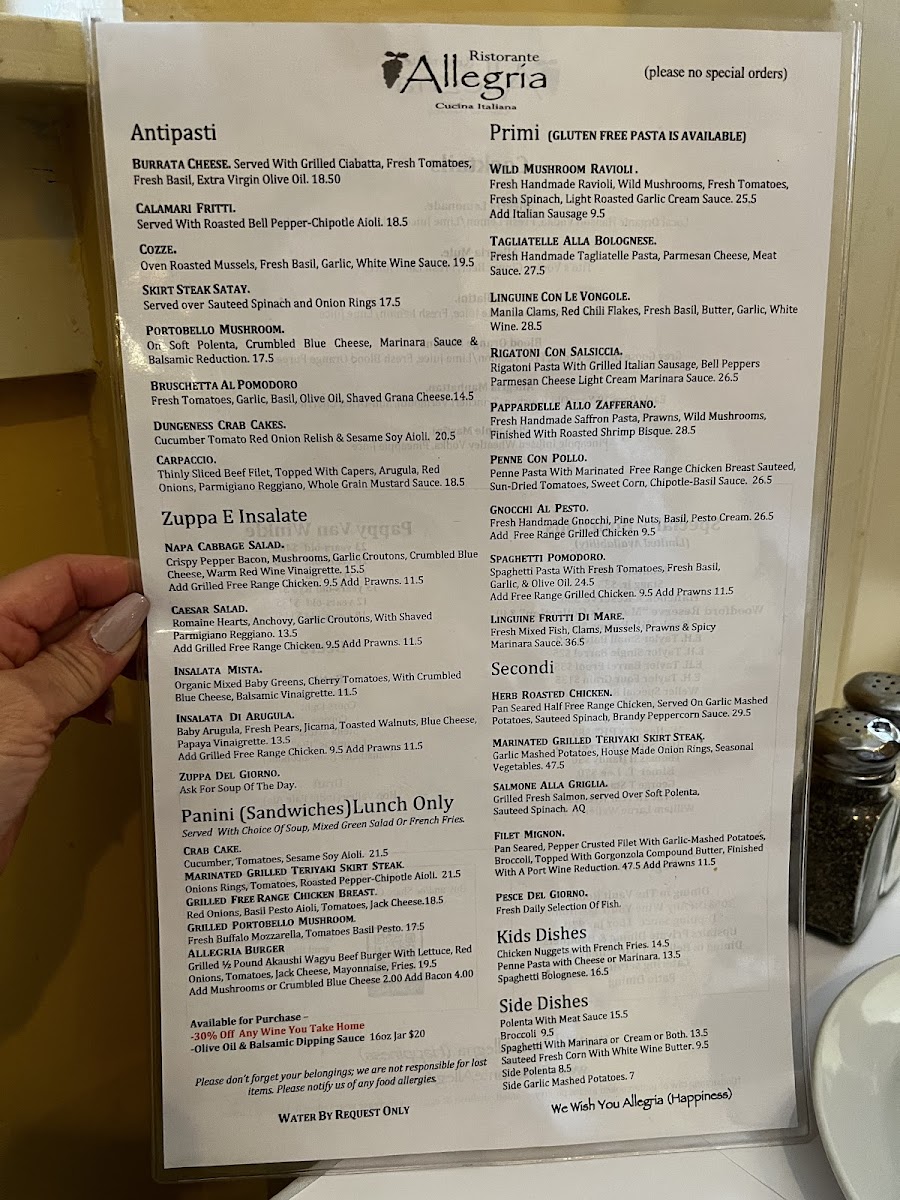 Kids are not forgotten, with a menu offering familiar favorites. Ristorante Allegria not only delights the palate but also welcomes you with its rustic decor and attentive service, making it a perfect dining choice for Italian cuisine enthusiasts.